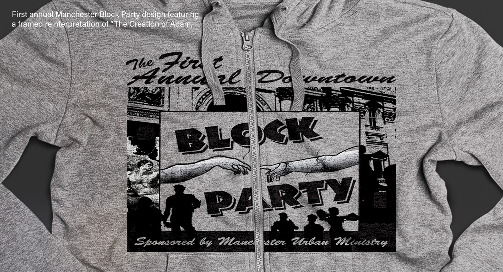 Original concept sketch for custom Block Party design hand-drawn for precision layout and placement.