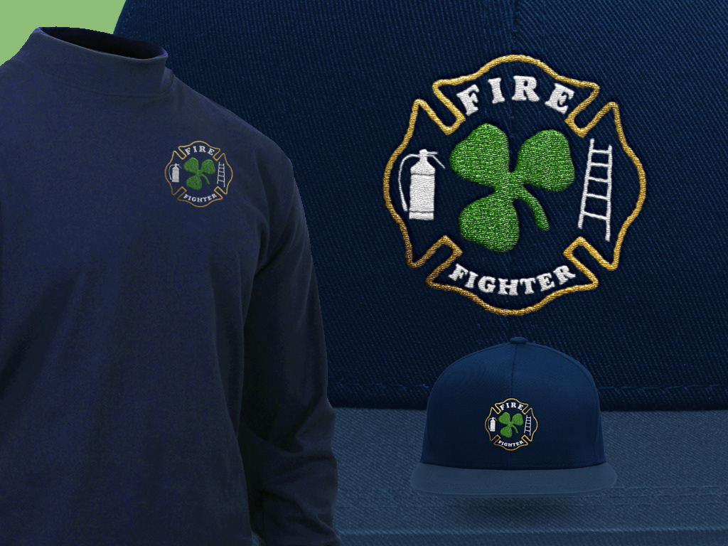 Screen Printed Irish Firefighters Embroidery Symbol Shirt and Hat Design